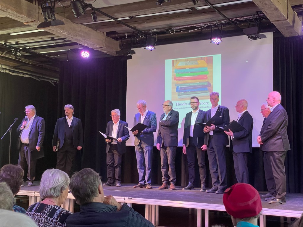 Kommunfullmäktiges 1e vice ordförande Håkan Eriksson berättade om firandet av 400-årsjubileet och framhöll särskilt den nya bokserien Hundra år i Göteborg